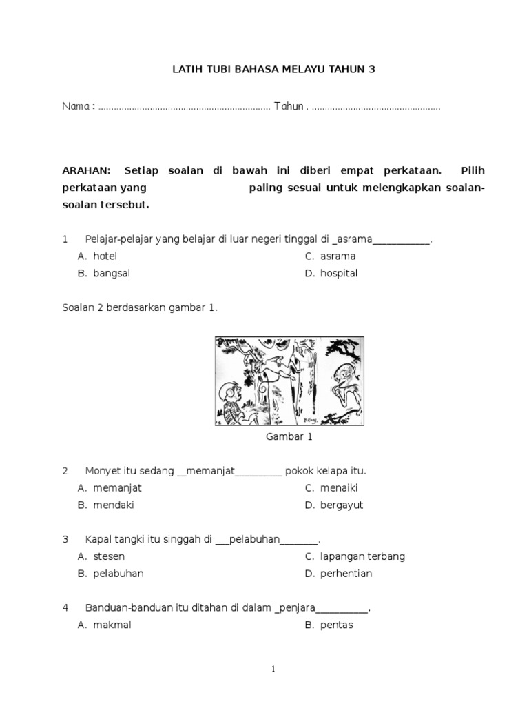 Latih Tubi Soalan Latihan Bahasa Melayu Tahun 1 3 Pdf